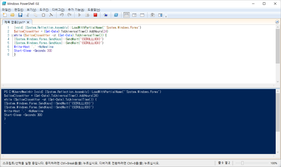 파일로 저장할 필요도 없이 필요한 환경에서 PowerShell ISE를 열어서 아래 내용을 입력해서 실행만 하면 된다.