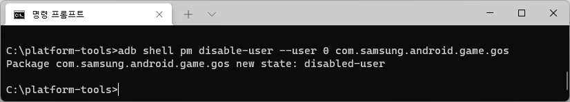 adb shell pm disable-user --user 0 com.samsung.android.game.gos