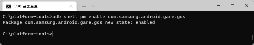 adb shell pm enable com.samsung.android.game.gos