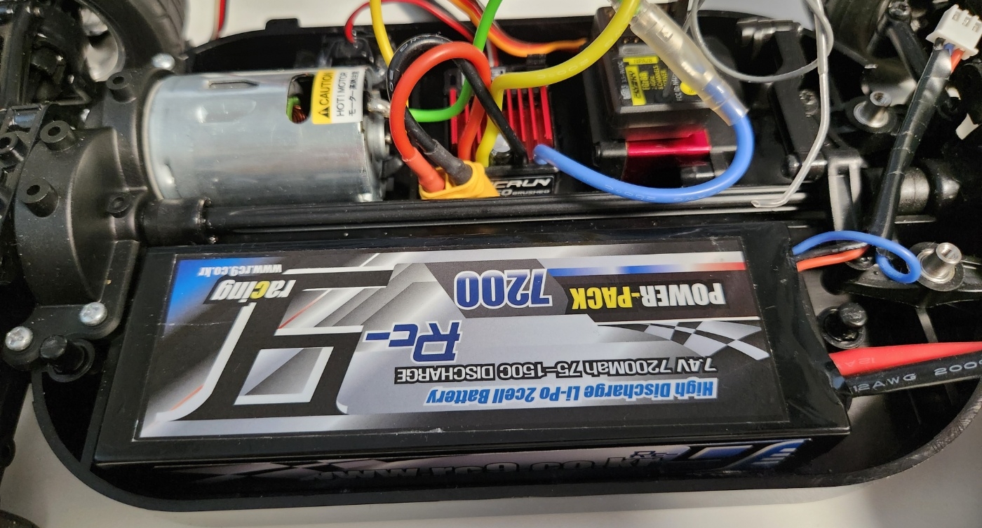 샷시가 타미야 배터리 기준으로 설계되어 있어서 2셀 리튬 폴리머 배터리를 장착하기 어려운 형태이다.