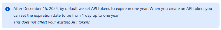 단순 접속만 하더라도 120일 타이머가 리셋 되기 때문에 안전하게 110일 정도 간격으로 접속을 하도록 해두면 쉽게 회피는 가능한데, 문제는 2024년 12월 15일 이후 생성하는 API 토큰은 유효기간이 최대 1년으로 제한된다는 것이다.