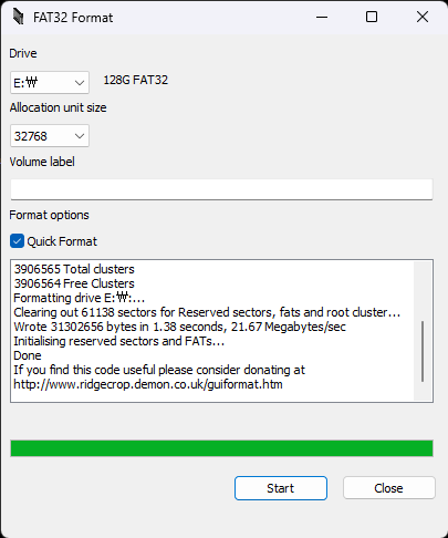 대용량 볼륨을 FAT32 포맷하는 가장 가벼운 유틸리티 - GUIFormat