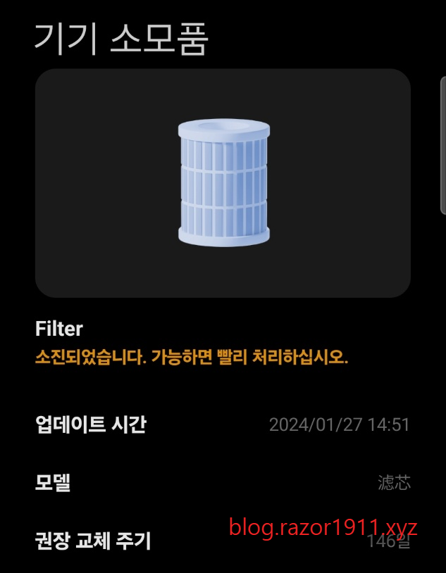 이 타이머의 문제는 공기 청정기 필터의 오염도와 무관하게 단순히 시간만으로 필터의 수명을 계산하기 때문에, 거의 오염이 없는 필터라 하더라도 총 가동 시간이 교체 주기 날짜를 초과하면 아래처럼 필터 교체 알림이 지속적으로 발생한다.