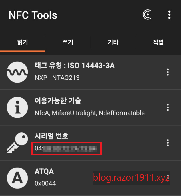 참고로 먼저 NFC 옵션에서 태그 읽기/쓰기 옵션이 ON 되어있는지 확인하자.