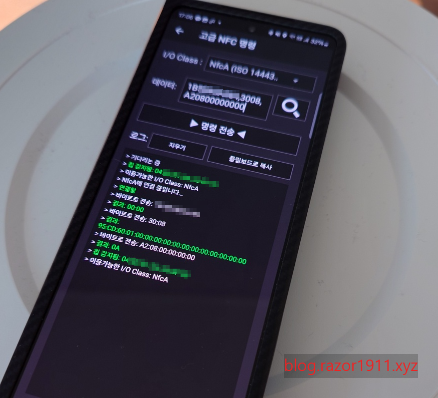 실행 결과를 복사한 후, NFC Tools -> 기타 > 고급 NFC 명령에 그대로 붙여넣는다.