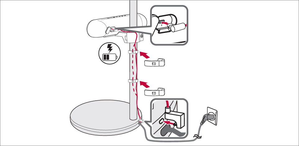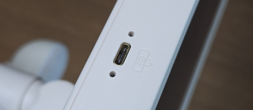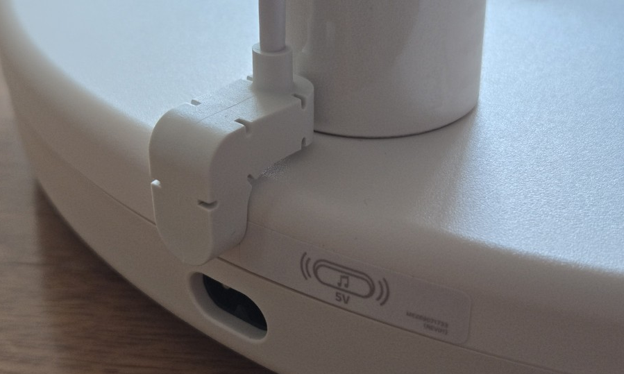 전용 스피커임에도 스탠바이미2 장착 시에 여전히 USB 충전 케이블이 스탠드 뒤로 노출됩니다.