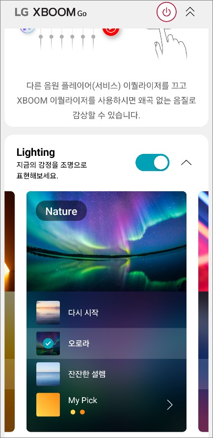 그나마 XBOOM 이라는 스피커 전용 별도의 앱을 사용하면 배터리 정보를 확인할 수 있고, 라이트 색깔도 변경할 수 있습니다.