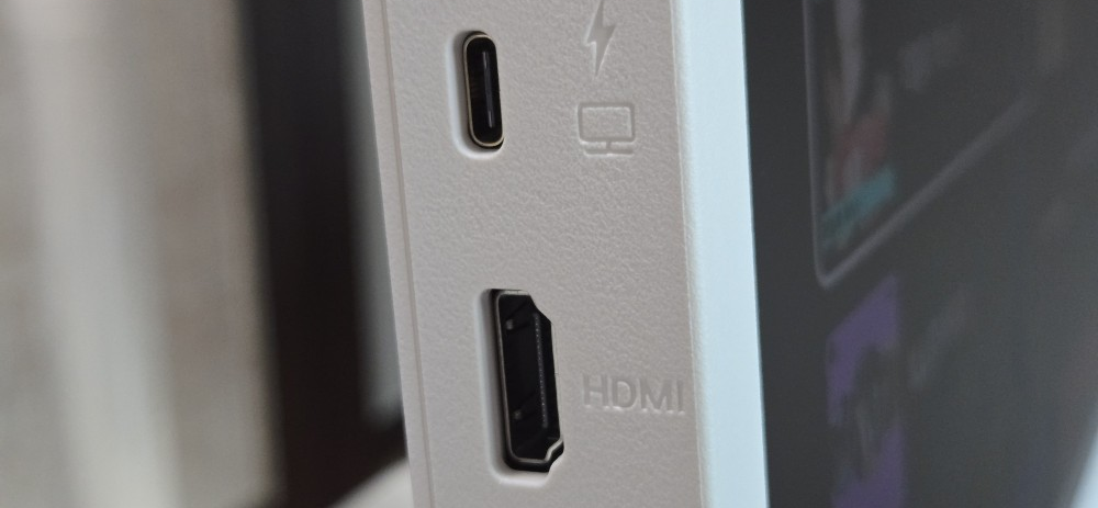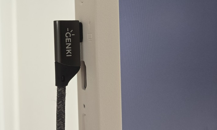 USB-C 포트가 제품 옆에 위치해 케이블 결합 시 안정감이 부족합니다. 100W급 USB-C 케이블은 꽤 무거운데, 하중에 대한 고려가 없는 설계입니다. 90도 꺾인 케이블을 사용하면 안정감은 있지만 바로 아래에 있는 HDMI 단자와 간섭이 발생합니다.