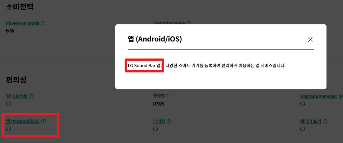 그런데 여기서도 좀 웃긴 부분이 있는데, 홈페이지의 사운드바 스펙 페이지에는 LG Soundbar 앱을 사용하라고 되어 있는데, 실제로는 XBOOM 이라는 앱을 사용해야 합니다.