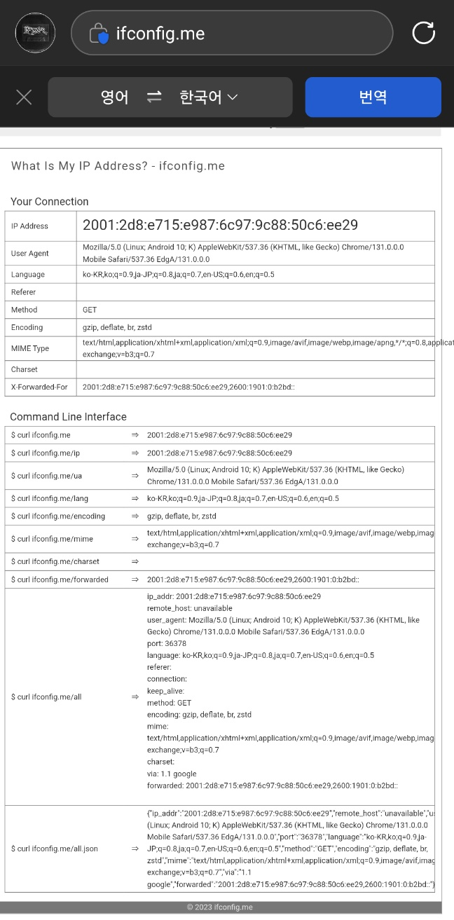 아래와 같은 방법으로 쉽게 내 IP를 알 수 있다.