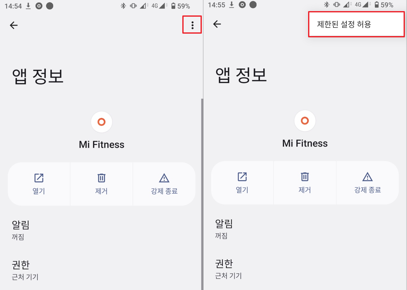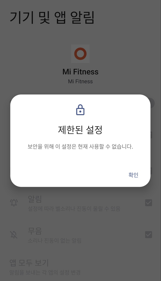 설치된 앱 리스트로 가서 해당 앱을 선택 후, ⋮ 메뉴 버튼 -> 제한된 설정 허용을 클릭한다.
