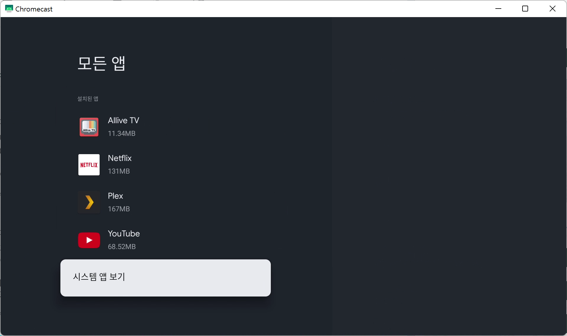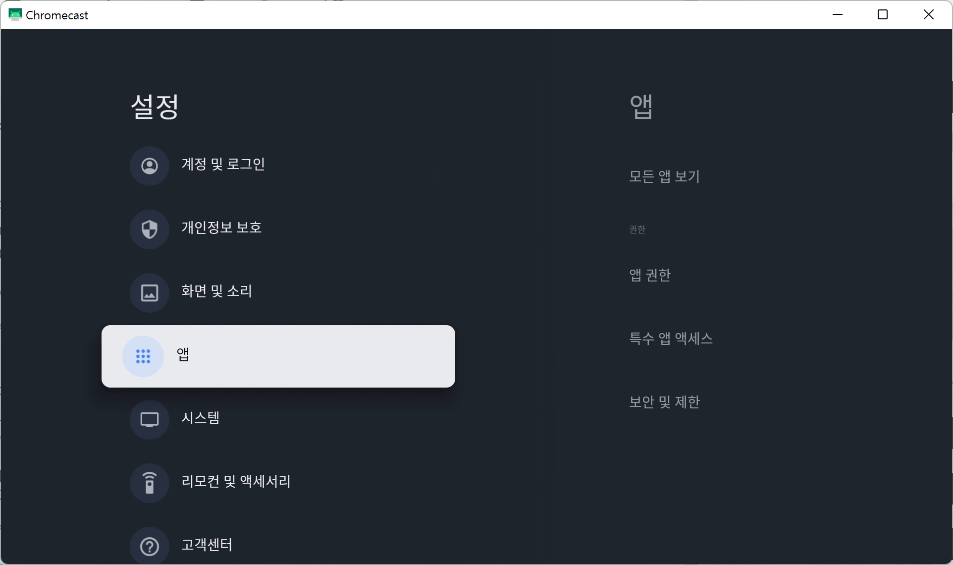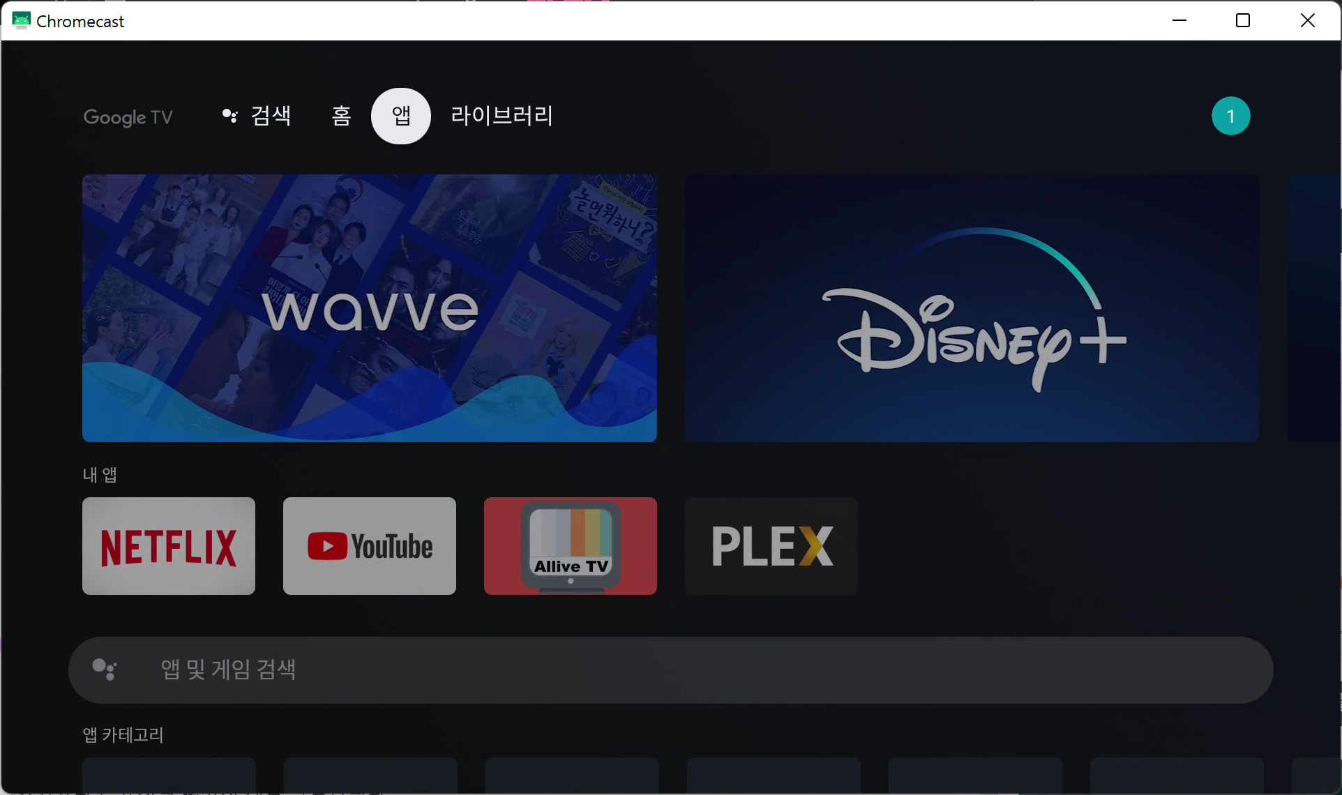 Chromecast With TV 는 Google TV와 다르게 플레이스토어가 외부에 표시되지 않는다.