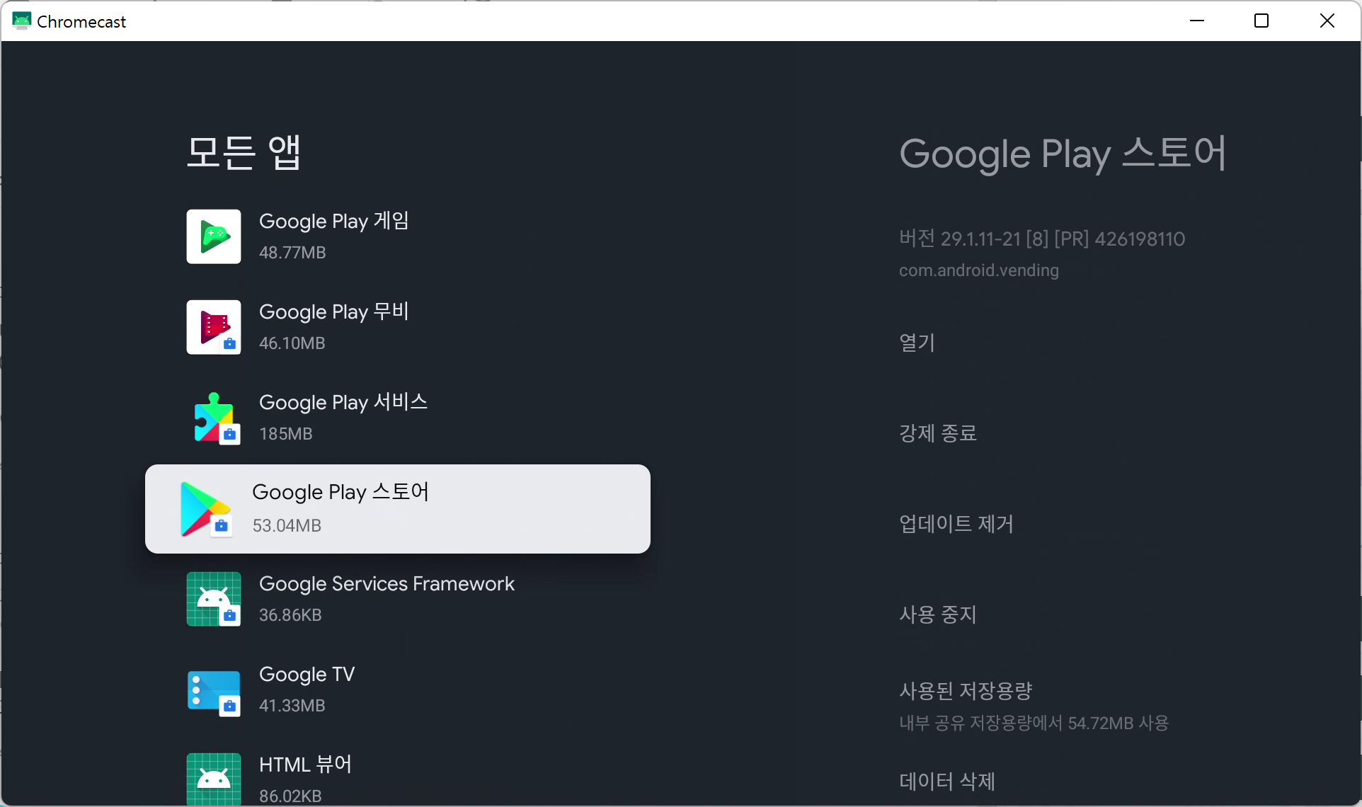 Chromecast With TV 는 Google TV와 다르게 플레이스토어가 외부에 표시되지 않는다.
