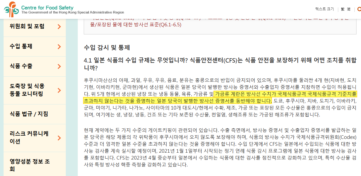 홍콩 식품안전센터의 Q&A 문서를 찾아보자.