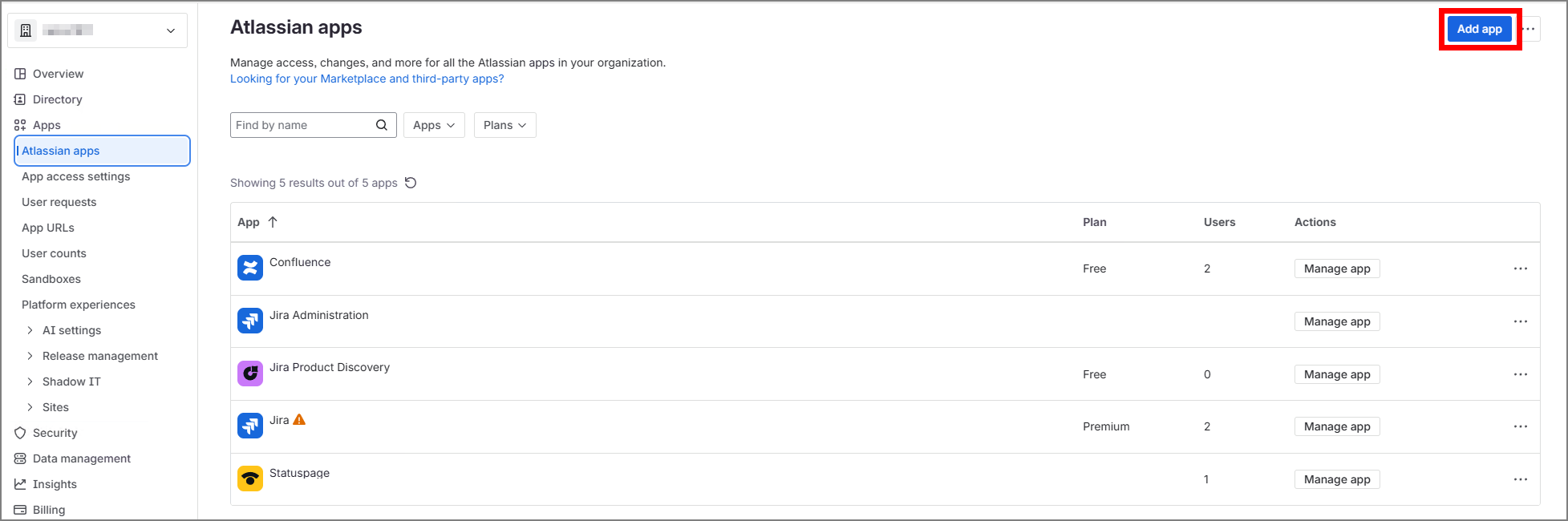 Apps > Atlassian apps 에서 Add app 클릭