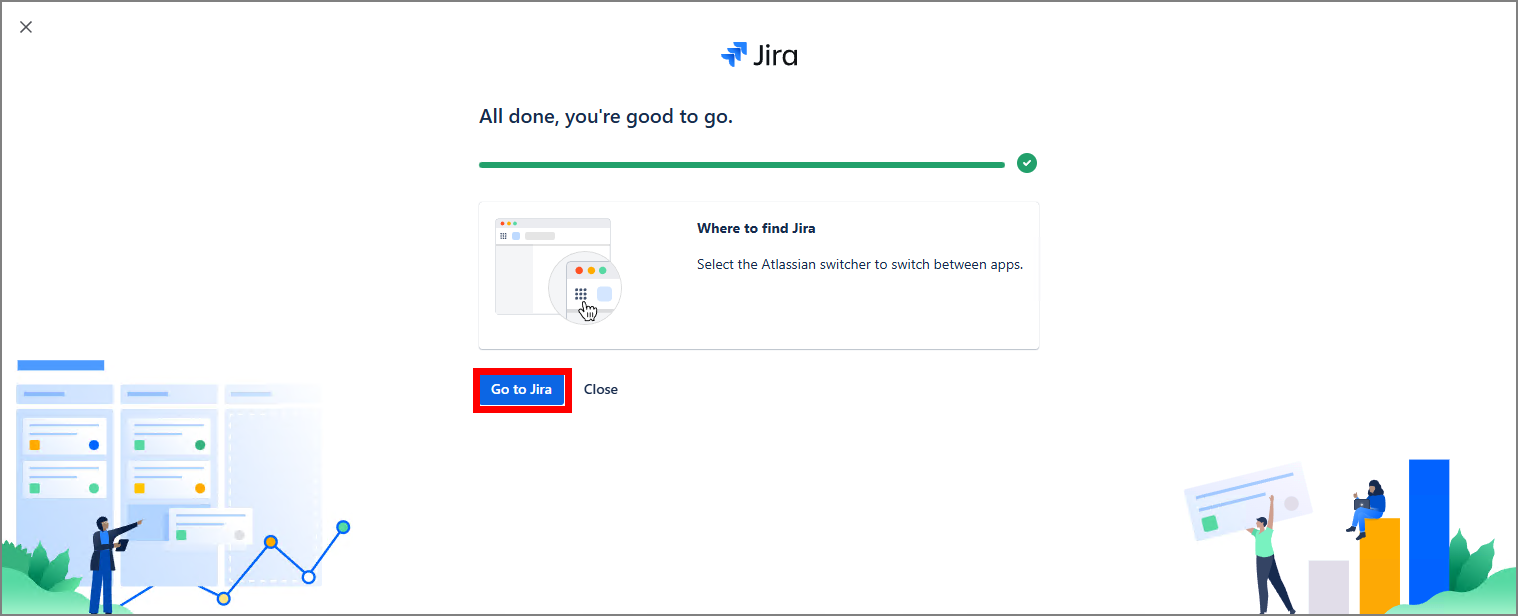 약 10~20초 정도 후 Go to Jira 버튼이 활성화 되면 클릭한다.