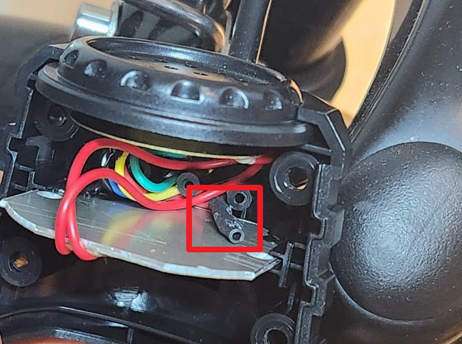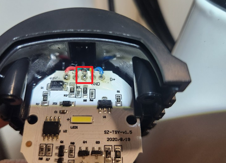 전조등 모듈을 열어보면, 자전거 스로틀에서부터 내려온 5가닥의 케이블 중, 바퀴 회전 속도 정보를 전달하는 검정 케이블만 유일하게 전조등 기판에 직결되어 있지 않다.