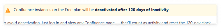 Confluence Cloud 는 120일간 미접속 상태가 되면 인스턴스가 자동으로 비활성화 된다.