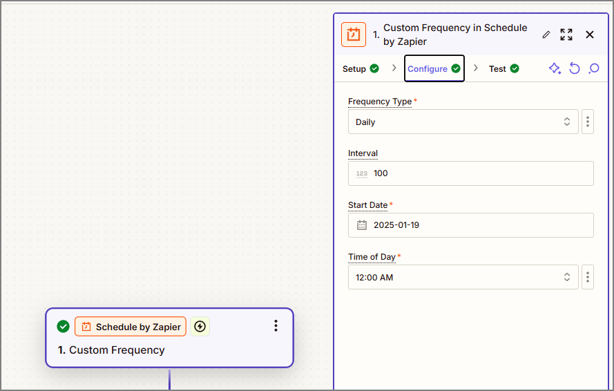 Zapier (zapier.com) -> Zap 생성 -> Schedule by Zapier -> 100일 간격으로 트리거가 동작하도록 설정.