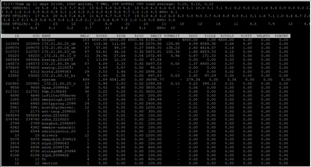 ESXi Host에 ssh 접속 후, esxtop 실행.