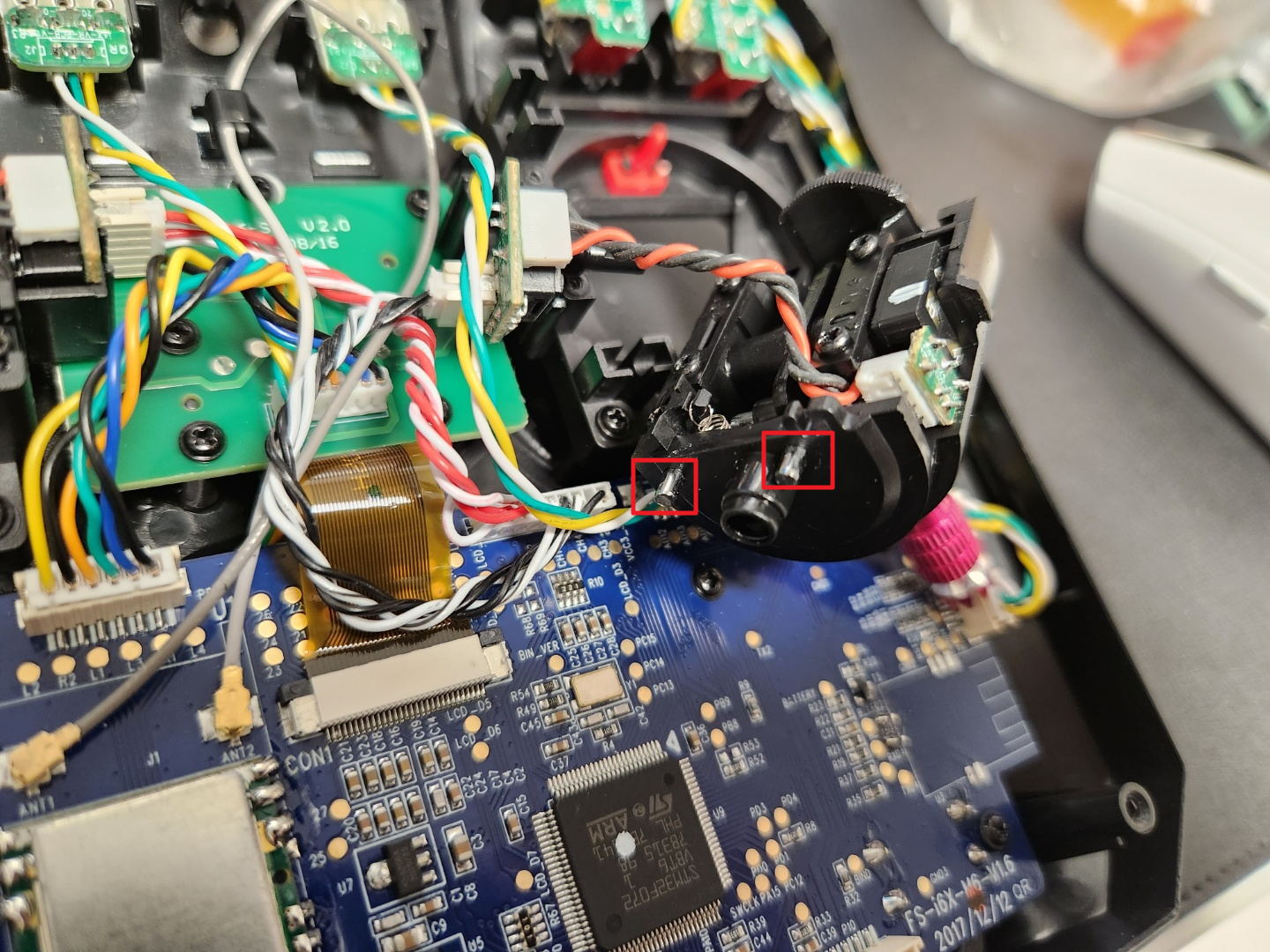빼지 않고 간섭 되지 않는 범위로 90도 꺾어서 조종기 안에 그대로 장착해뒀다.