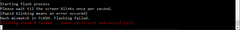 커넥트 까지는 정상이나 ,침셋 정보를 가져오지 못하는 경우에는 기기를 디버그모드로 연결 후 다시 플래싱을 시도한다.