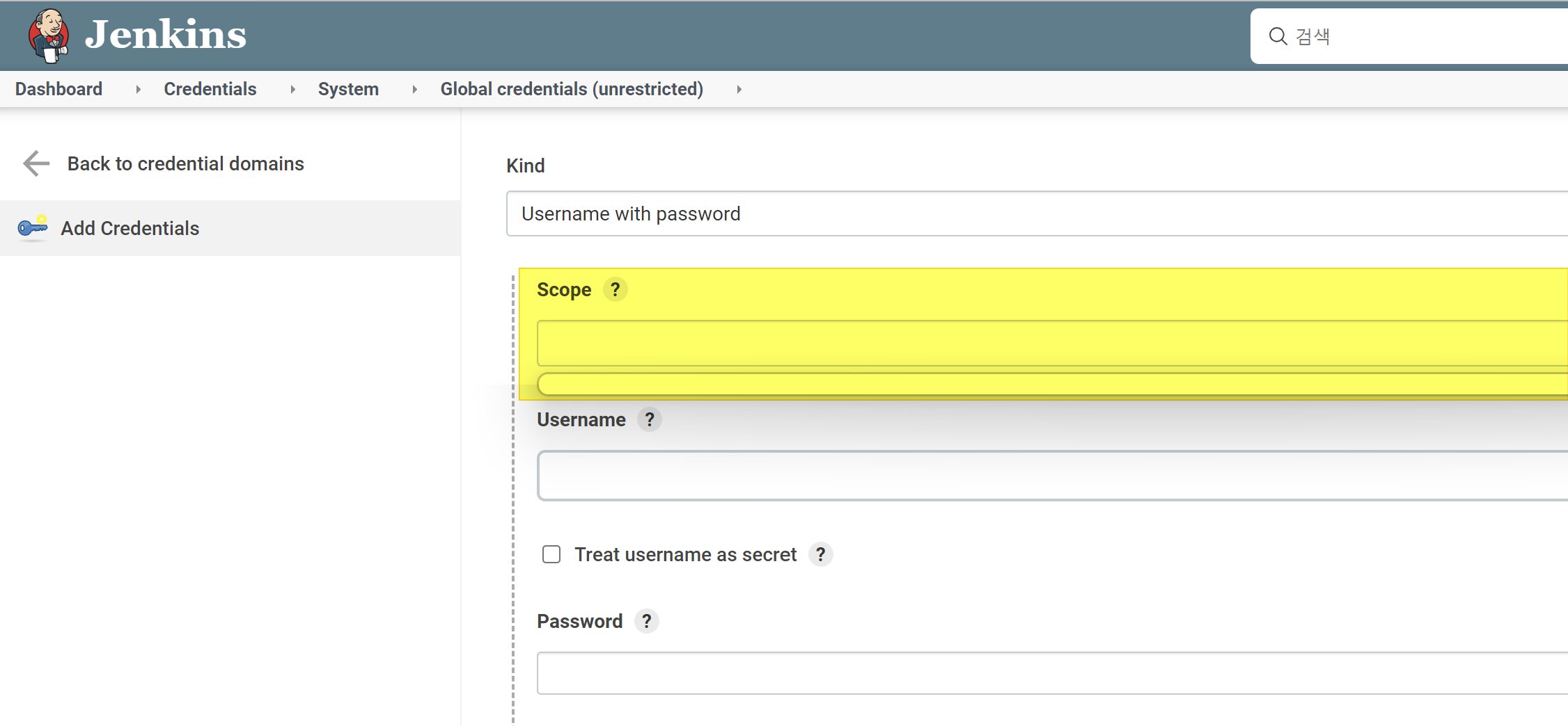Tools/Jenkins [Jenkins] Credentials > Scope 가 표시되지 않는 현상 razor1911 2022. 4. 29. 현상 Credentials > Add Credentials > Scope 내용이 표시되지 않아서 계정 추가가 되지 않음. Job 에서 Script Console 등도 열리지 않는 현상이 같이 발생한다. 해결 브라우저의 광고 차단 플러그인 때문에 발생. 광고 차단 앱에서 Jenkins 도메인을 예외 처리한다. 공유하기 게시글 관리 Insert No Coins 저작자표시 비영리 변경금지 (새창열림) 'Tools/Jenkins' 관련글 Synology Docker 로 Jenkins 구축 [Jenkins] build user vars plugin [Jenkins] Naming Strategy Jenkins - pipeline Script Sandbox 커서가 어긋나는 현상