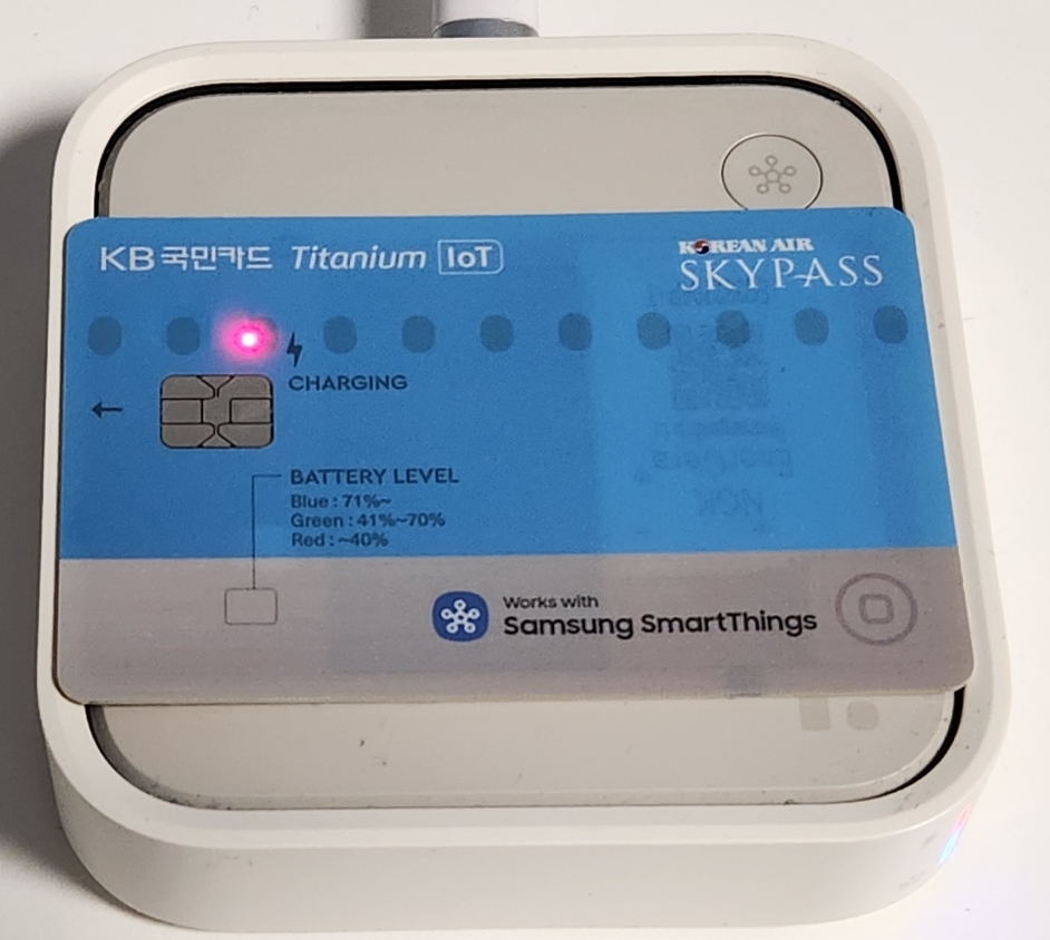 - 무선 충전기에 올리면 충전은 시작되나, 카드의 전원은 자동으로 켜지진 않는다.