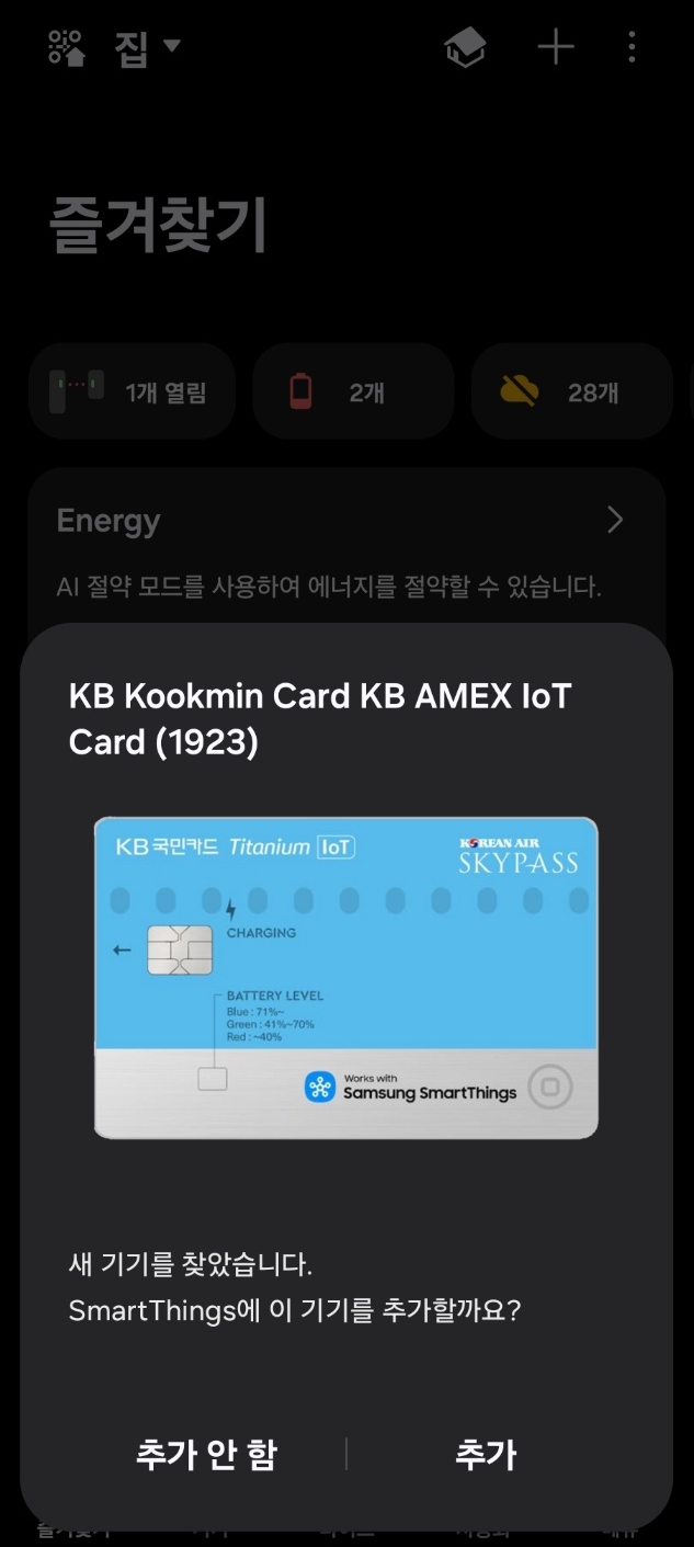 - 우측 하단의 버튼을 누르면 카드가 활성화 된다.