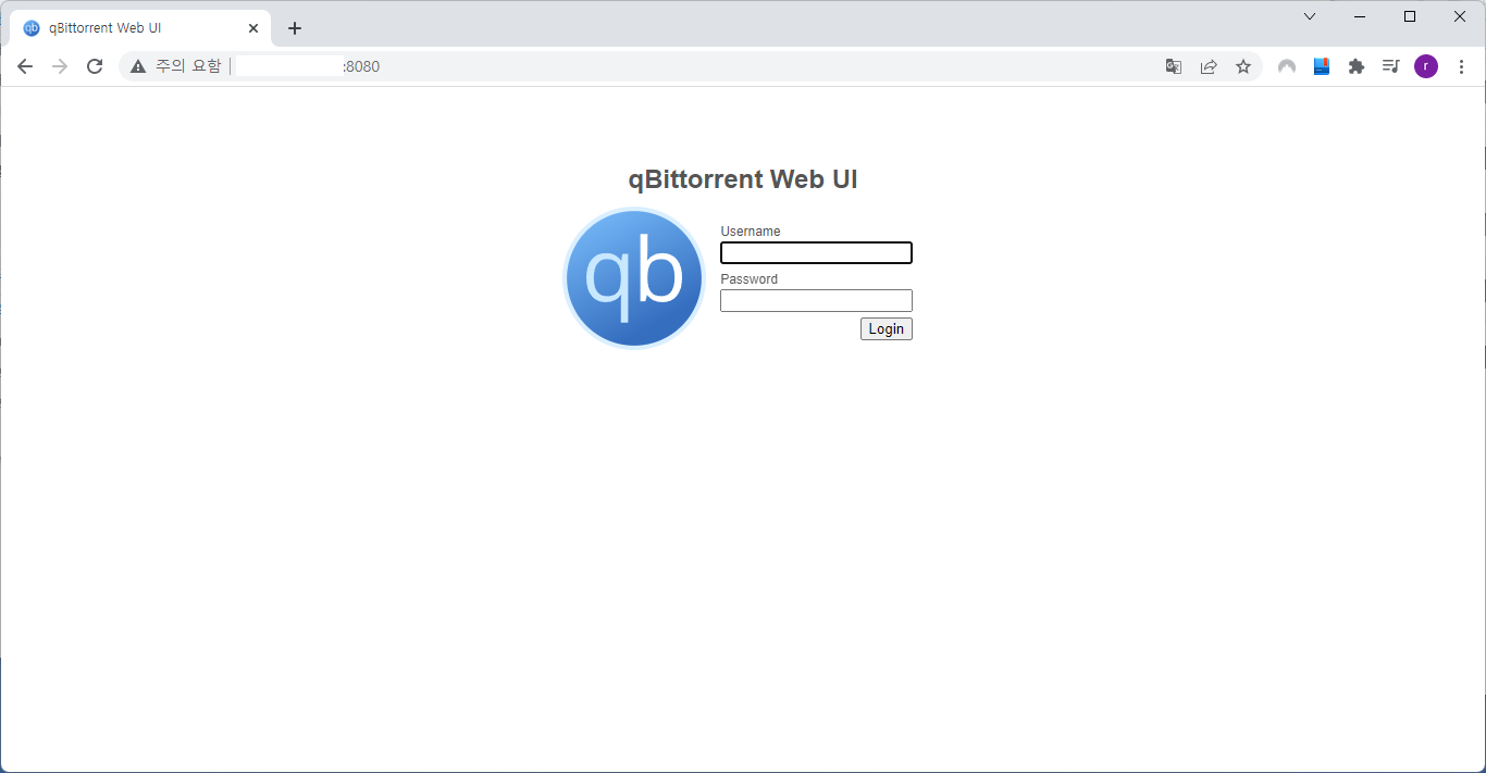 그 후 NAS IP:8080 으로 접속해서 WebUI 가 표시되면 로그인 합니다. (admin / adminadmin)