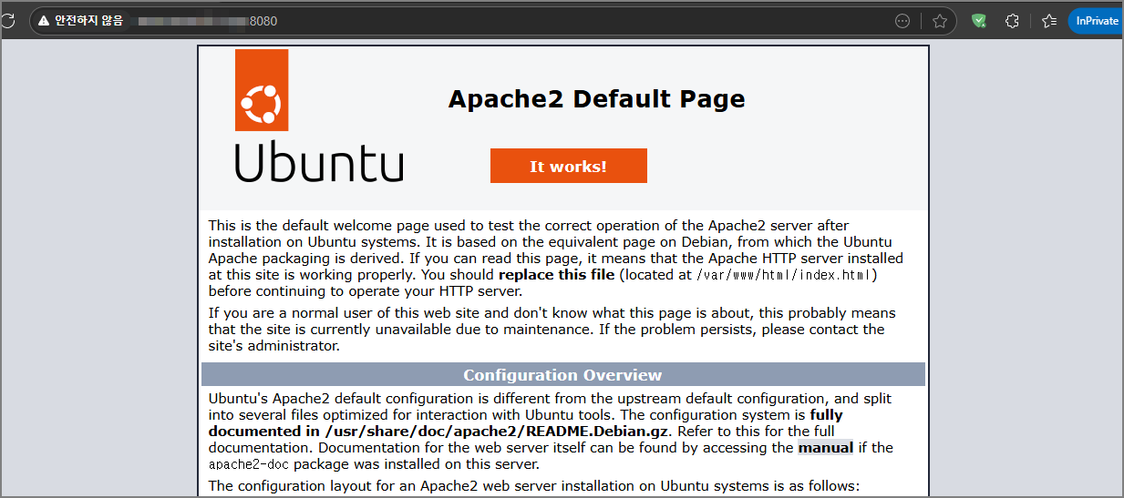 그런데 기본 포트를 사용하지 않는 환경에서는 여전히 기본 페이지가 표시될 것이다.
