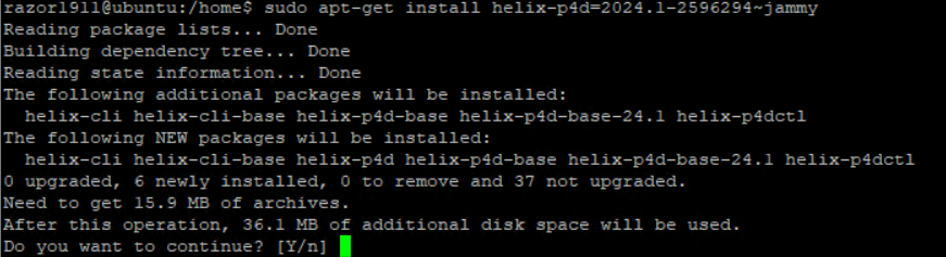 sudo apt-get install helix-p4d=2024.1-2596294~jammy