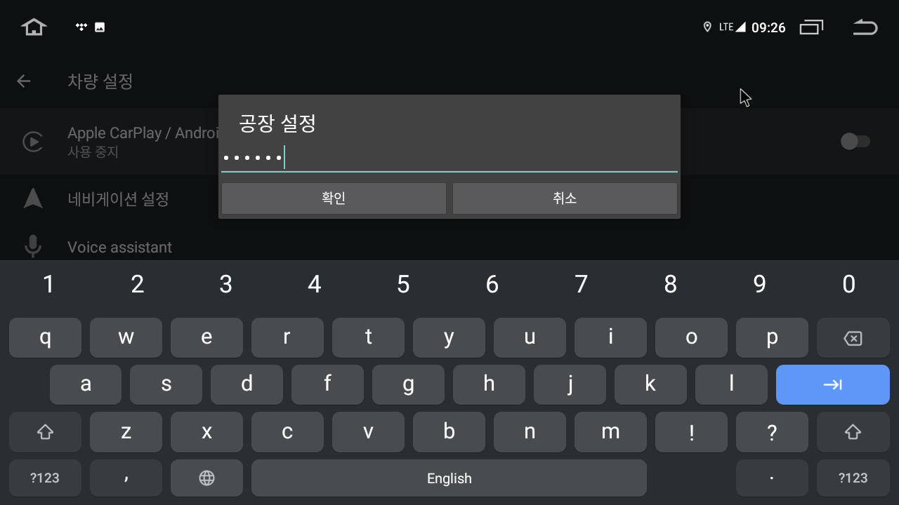 1. 설정 -> 차량 설정 -> 공장 설정 메뉴 진입.