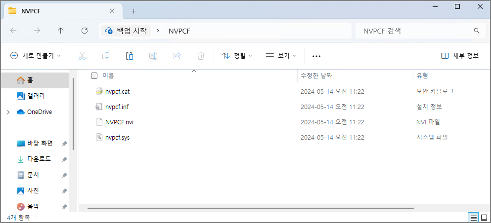 아래는 드라이버 파일에서 NVPCF 폴더만 추출한 파일이다.