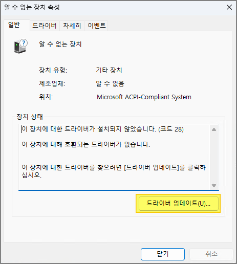 아래와 같이 알 수 없는 장치 1개가 남는다.