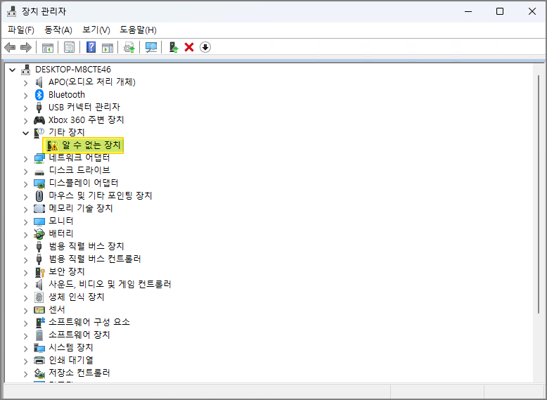 아래와 같이 알 수 없는 장치 1개가 남는다.