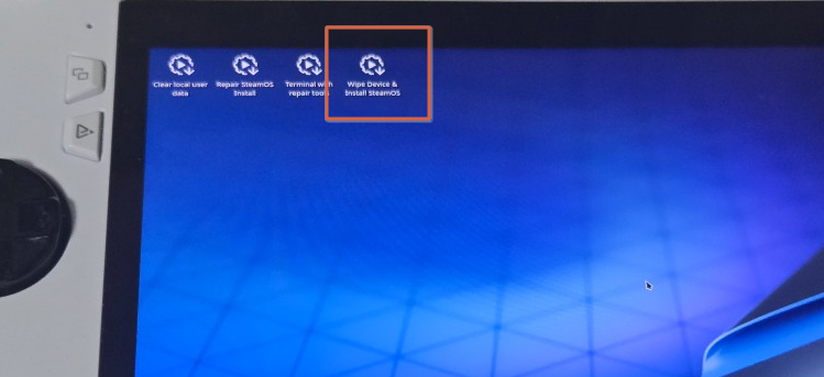 Wipe Device & Install SteamOS 를 선택해서 Windows 가 설치된 파티션을 초기화하고 SteamOS를 설치한다.
