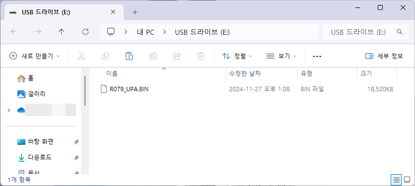 2. 압축을 해제한 R079_UPA.BIN 파일을 USB 메모리 루트에 복사한다.