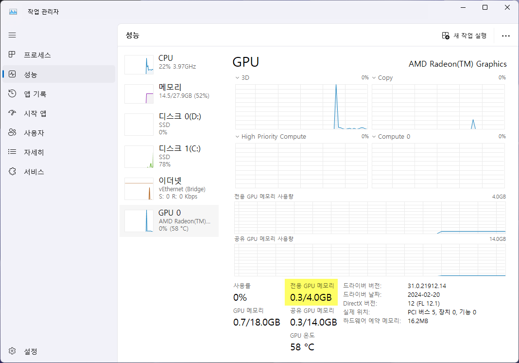 3. UMA_SPECIFIED 를 선택하면 UMA Frame buffer size 설정이 활성화된다. 원하는 메모리를 선택한다. ex) 4G