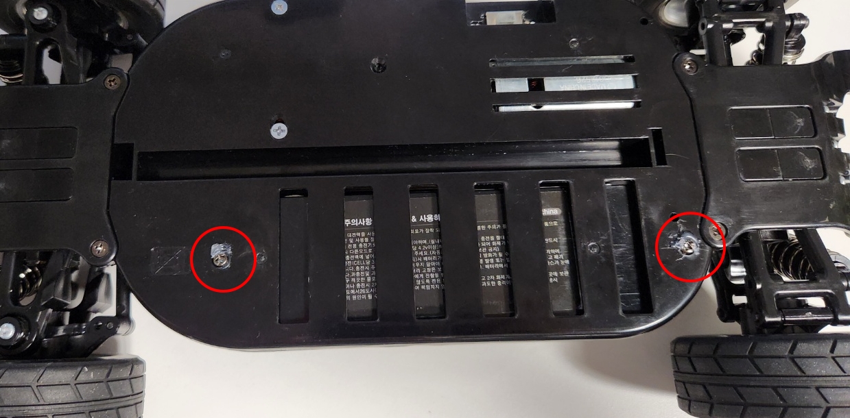 그 후 배터리 고정 기둥이 바닥으로 내려가지 않도록 볼트를 글루건으로 고정한다.