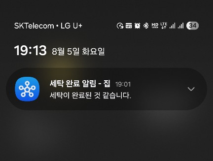 최대한 순정 (?) 느낌으로 세탁 완료 알림을 받아보자.