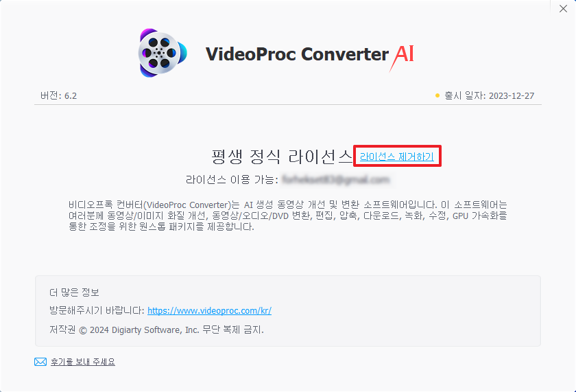 케이스1: 라이선스를 활성화 했던 VideoProc Converter를 사용할 수 있는 경우