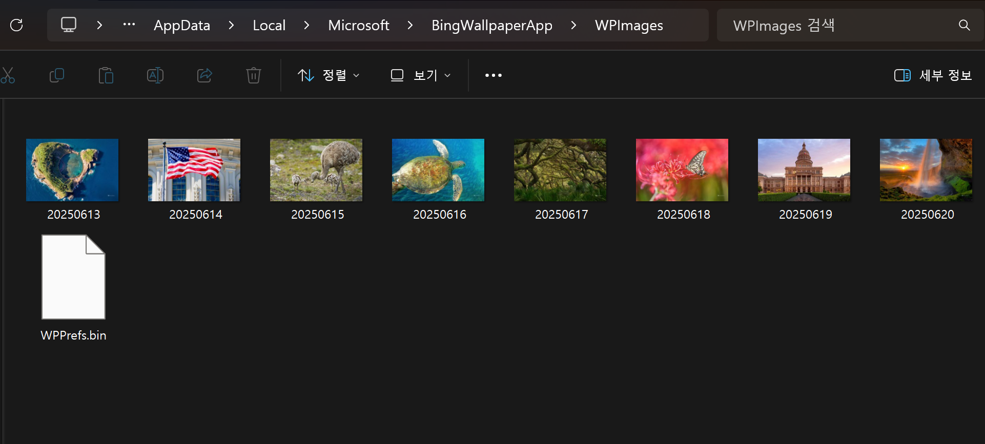 마음에 드는 사진이 있으면 아래 위치에서 해당 파일을 찾아서 다른 곳에 복사해두면 된다.