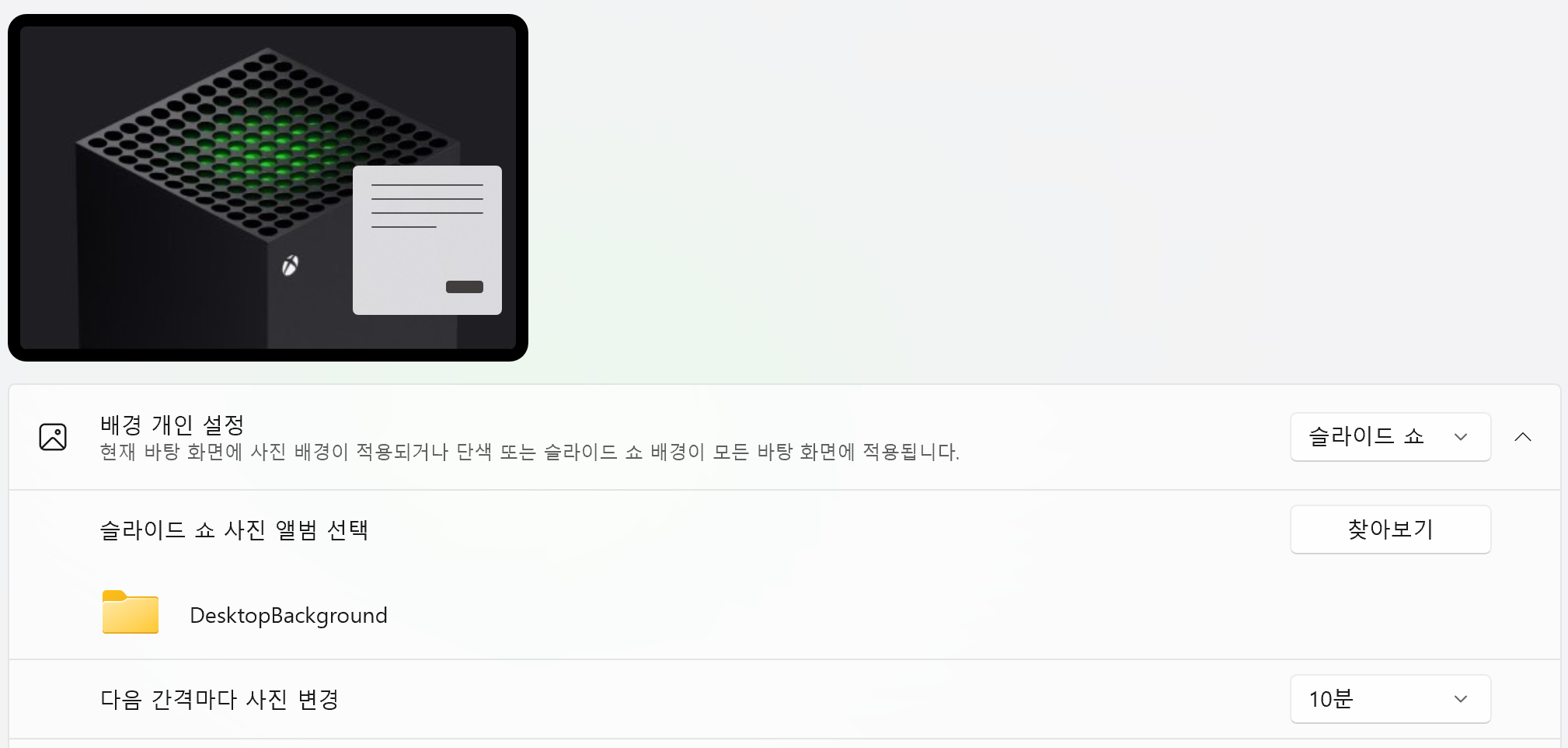 그런데 설치 후, 슬라이 쇼 사진 앨범 선택 > 찾아보기를 눌러보면 해당 테마의 사진 폴더가 아니라 사용자의 사진 폴더가 열린다.