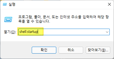 OS/Windows Windows 10/11 시작 프로그램에 앱 추가 razor1911 2022. 1. 17. 시작 > 실행 (or Win키 + R) shell:startup 입력 후 확인 시작 프로그램 폴더가 표시되면 해당 공간에 실행 시킬 프로그램의 바로가기 생성 공유하기 게시글 관리 Insert No Coins 저작자표시 비영리 변경금지 (새창열림) 'OS/Windows' 관련글 OpenVPN 사용 시, Microsoft Office / Store 앱 인터넷 연결 유지 [Windows] WSL2 Ubuntu 구동 시, 0x80370102 에러 [Windows] Windows 10/11 자동 로그인 설정 [WSL] WSL2 Ubuntu 구동 시, 0x800701bc 에러