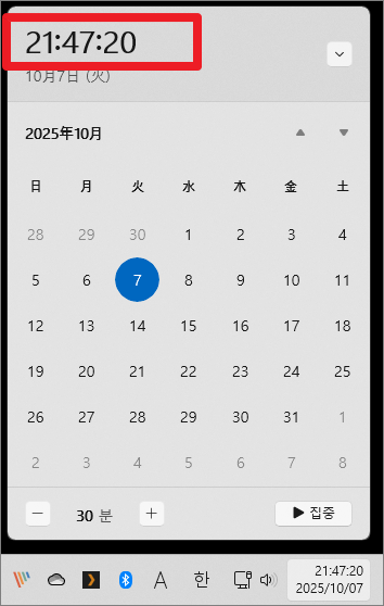 작업 표시줄에서 초 단위 시간 표시