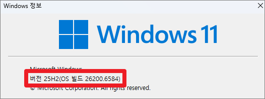 재시작 후, 버전을 확인해보면 25H2 로 바뀌어있다.