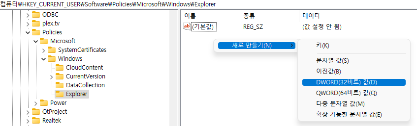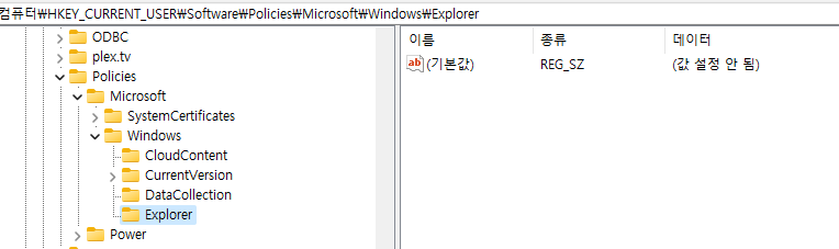 Explorer키가 없으면 해당 키를 생성해준다. (저의 경우는 없었습니다)
