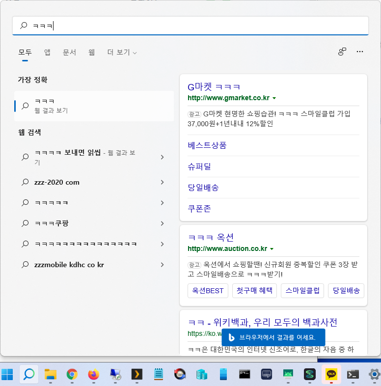 작업 표시줄 검색창 딜레이인데, 이건 검색 시에 Bing 검색 쿼리가 포함되어 있어서 발생한다.