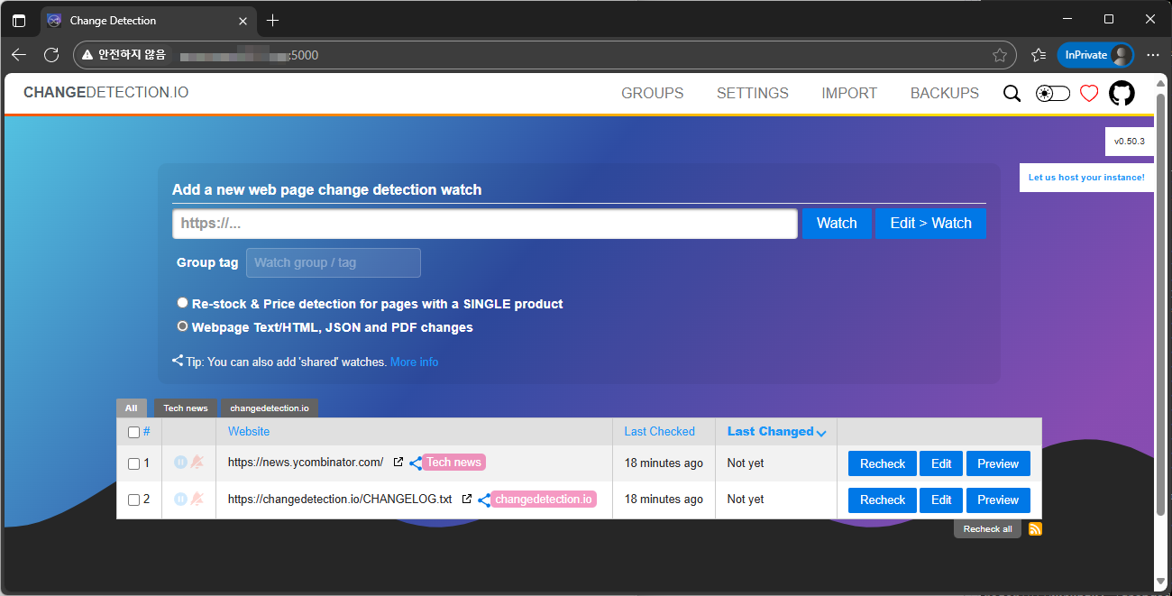사이트 변경사항을 추적하는 서비스를 클라우드 인스턴스에 안전하게 구축해보자.